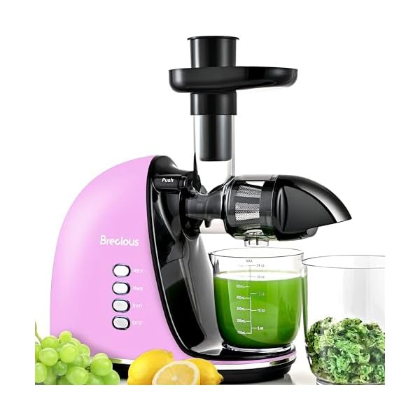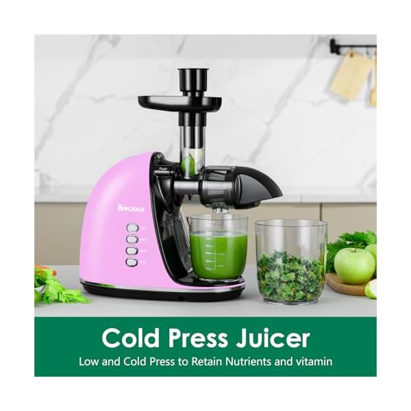 POWERFUL MOTOR & LESS NOISE: The Brecious Cold Press Juicers has a powerful and quieter motor for really fresh juice that tastes better. During the working process Brecious slow juicers produces less than 60DB noise which will not disturb sleep.