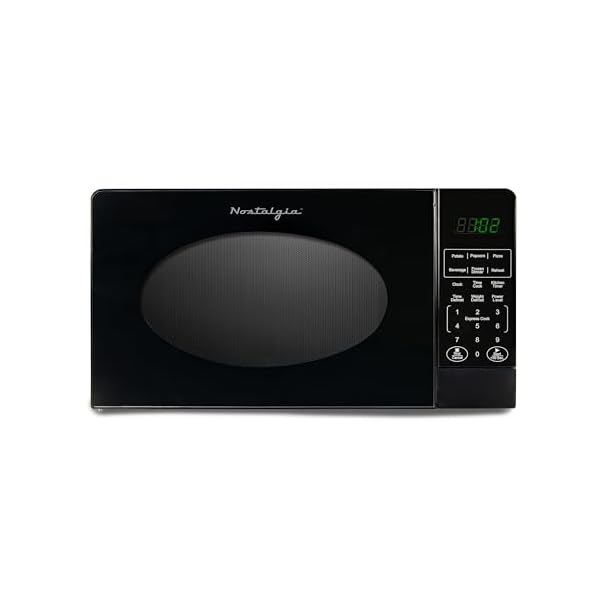 RETRO ACCENTS: A sleek design with a user-friendly control panel, this microwave looks great in any modern kitchen.