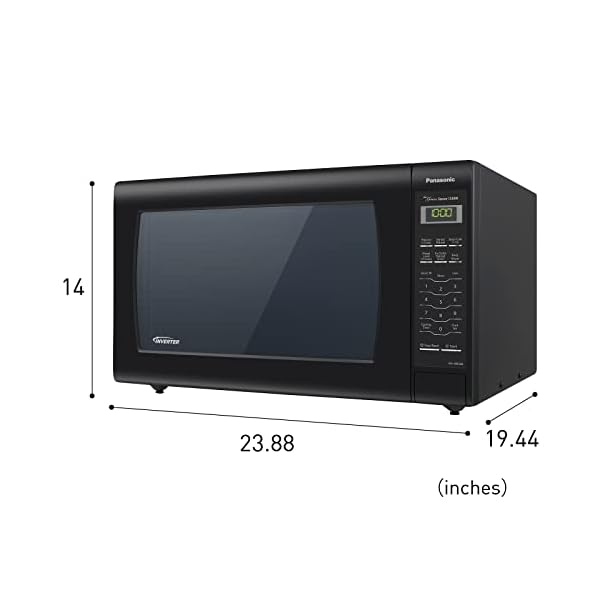 This 2. 2 cu Ft. Large microwave oven features Panasonic patented Inverter technology engineered for even cooking and delicious results – no more overcooked edges or cold centers. Inverter technology delivers microwave energy in a way that allows delicate foods to simmer without overcooking. Foods retain more Color, texture and nutrients for fast, easy and delicious results. The Panasonic nn-sn936b offers 1250 watts of high cooking power and 14 preset auto cook menu items (sensor cooking Chart included in manual). one-touch genius sensor cook and reheat functions, takes the guesswork out of microwaving by automatically setting power levels and adjusting cooking or reheating time. Other highlights include a membrane keypad Inverter Turbo defrost technology, 10 power levels, popcorn button, keep warm mode, delay start, timer, quick 30Sec, 15″ Turntable and more/less control. The countertop microwave oven measures 23 7/8″ W x 14″ H x 19 7/16″ D and has a glossy Black finish. As a countertop microwave, The Panasonic nn-sn936b can rest on any open surface in the kitchen and can be easily moved. For a finished built-in look, order trim kit For 27” cabinet (Panasonic part # nn-tk922ss) or Trim kit For 30” cabinet (Panasonic part # nn-tk932ss) and install directly into pre-existing cabinetry space. Disclaimer: upper-inside left corner of microwave oven door has a small indentation to allow door to open smoothly. Do not store flammable materials next to, on top of, or in the microwave oven.