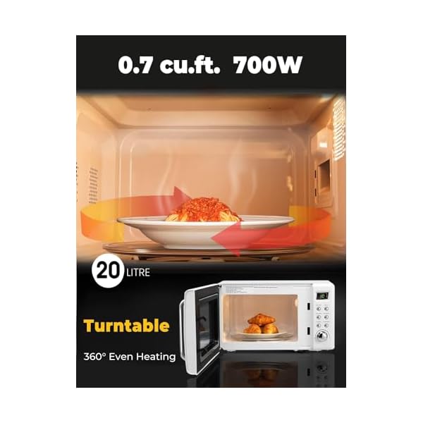 🍕【COMPACT MICROWAVE OVEN】0.7cu.ft portable microwave oven is suitable for daily use in home, office, store. 14 “D x 18 “W x 10 “H size is easy to place and store. Microwave has a vintage shape to add an artistic touch to your kitchen.