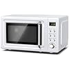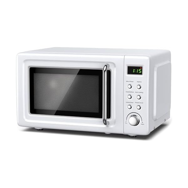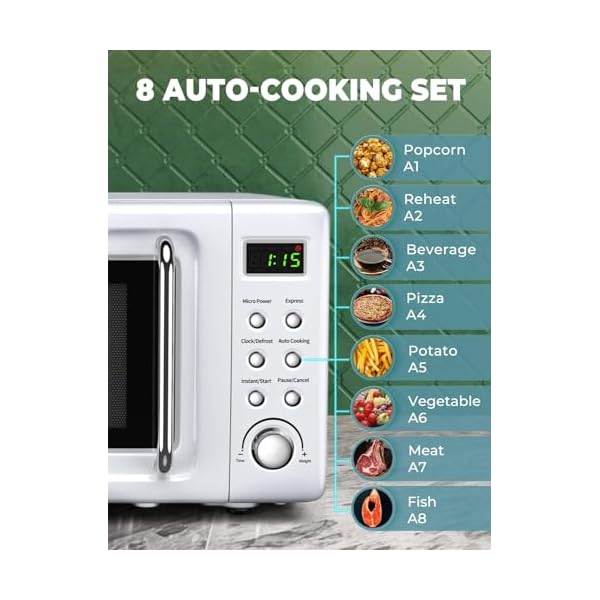 👶【SAFETY & USER-FRIENDLY DESIGN】Retro microwave oven with child lock for extra safety. Power cord is UL approved. Built-in warming light, insulated handles and non-slip feet are designed to bring your life simplicity and convenience.