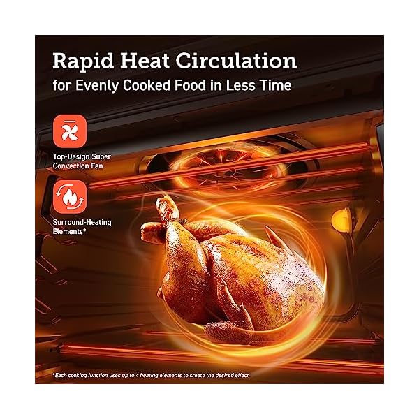 Cook In Minutes: 6 heat elements and a 2-speed fan, enjoy rapid heat circulation for evenly cooked food in less time.