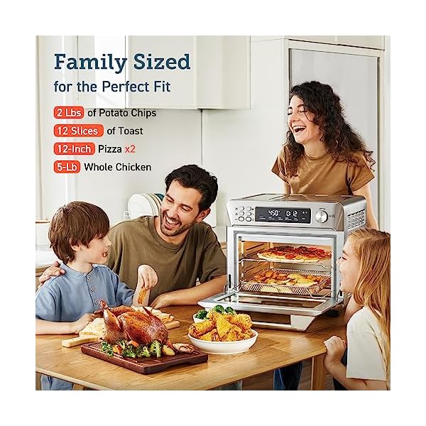 Fulfill Family Needs: Perfect for 6 slices of bread, a 12-inch pizza, or a 5lbs whole chicken to create an entire family meal in one 26QT oven. Make this Christmas unforgettable with a culinary creation that delights the whole family.