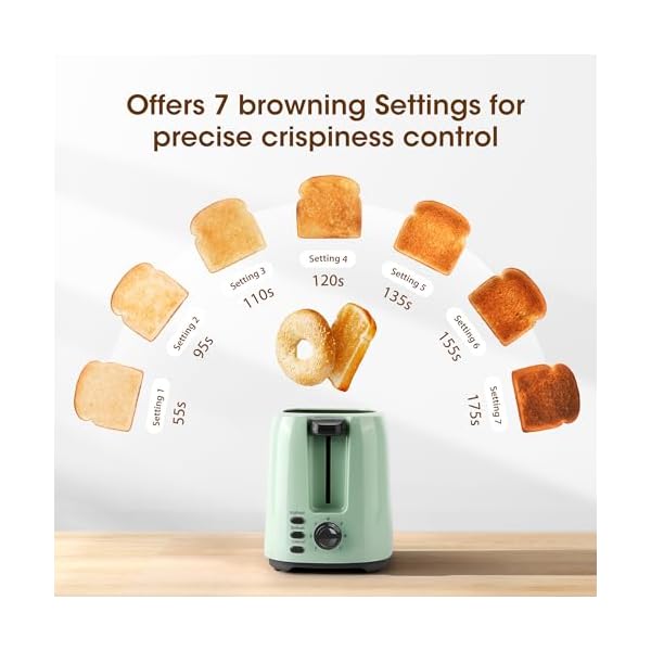 Even Browning With 7 Shade Settings & Double Sides Baking: The 7 selectable browning levels for 2-side baking allow optimal crispness for every type of bread and ensure even browning with precise control. The selectable toasting durations are between 55 to 175 seconds.