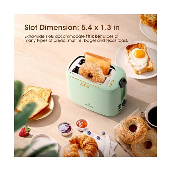 2 Slice Extra-wide Slots & 750 W Power: Each slot measures 5.4 × 1.3”, accommodating thick slices of many types of bread, bagel, muffins, waffles and more. The high power of 750 W shortens the toast duration which greatly save energy, delivering a crispy outside without drying out the inside of the toast.