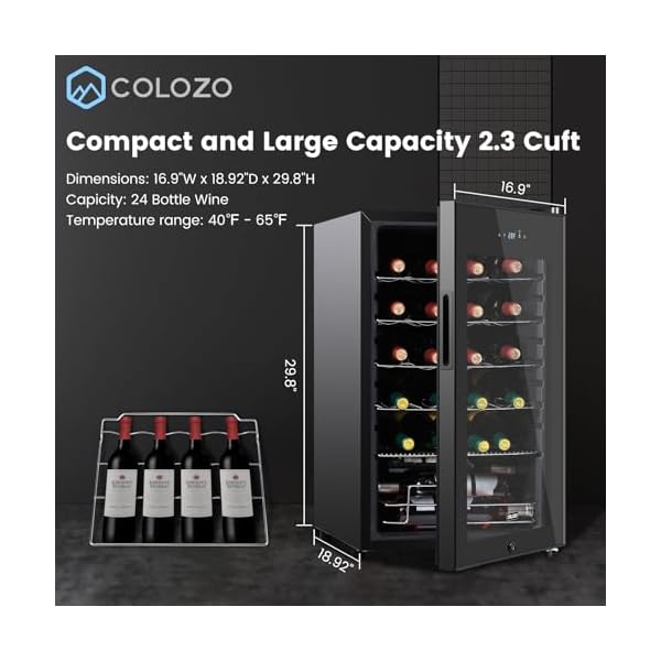 🍾【For Long-term Aging】Based on the temperature and humidity of the original underground wine cellar design, our Colozo wine cooler design with an upgraded powerful compressor technology, provide a long-term stable temperature range (40-65°F) and humidity auto control(50-80%),no matter how hot or cold it gets outside. Lets you customize an optimal environment for your wine of red, white or champagne. Temp and humidity stay consistent, help keep optimal for wines that taste better with age