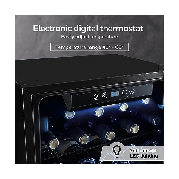 ELECTRONIC DIGITAL THERMOSTAT: Temperature setting are from 41°F-64.4°F. Temperature will not be affected by outside heat sources, and reaches temperatures low enough to house sparkling white wines.