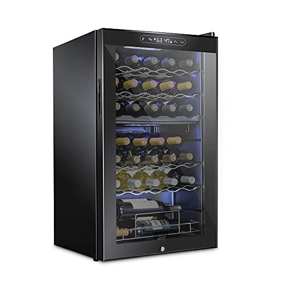 REMOVABLE RACKS & EASY-TO-USE TOUCH CONTROLS – Rearrange the shelves to accommodate varying bottle sizes. From pinot noir to champagne, you can be sure your collection ages comfortably. Easily adjust the temperature and turn on the light by tapping the digital display, then easily lock in settings with the lock button. The bright LCD display lets you view the temperature, even in the dark.