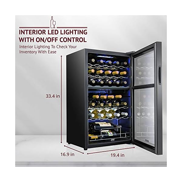 SOFT INTERIOR LIGHTING – Turn on the energy-efficient LED light to gently illuminate your collection. Say goodbye to harsh fluorescent bulbs that fade labels and affect flavor.