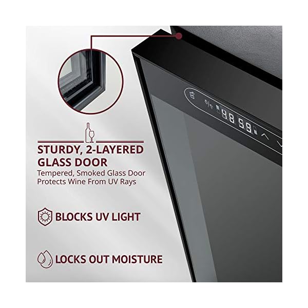 UV-RESISTANT DOUBLE-PANED THERMOPANE GLASS – A double-paned glass door not only keeps the interior insulated, but also protects your collection from harmful UV light that can damage the tannins and overall flavor of your wine.