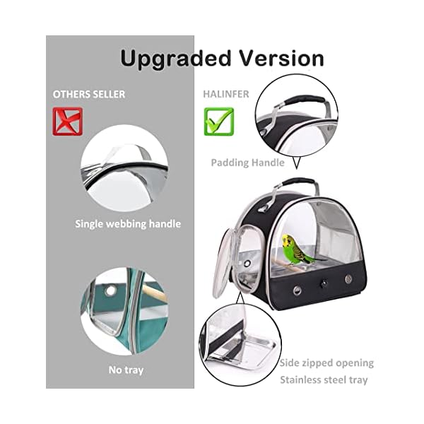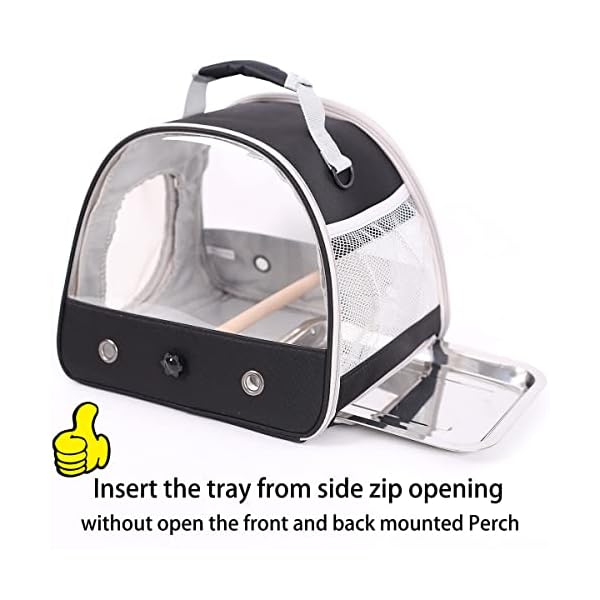 Free up your hands: This parakeet travel carrier bag is portable by the top soft handle, also sling backing by the adjustable strap included. Extra metal tray with side zipped opening for easy in & out, easy to clean after use.
