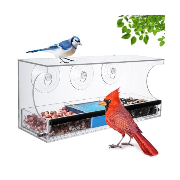 Crystal Clear Design: Enjoy unobstructed views of birds feeding right outside your window. Our feeder is made from high transparency, extra-thick acrylic, allowing you to observe beautiful songbirds up close with vivid detail.
