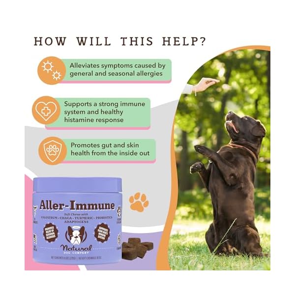 Leave Stress Behind & Enjoy The Outdoors: Our Allergy Immune Bites for Dogs alleviate symptoms of general & seasonal allergies caused by food, grass, pollen. Targeting root cause, it nourishes & moisturizes pup’s skin from within, soothing allergies. Our proprietary probiotic blend supports gut health & overall wellness. Embrace the outdoors worry-free with Aller-Immune!