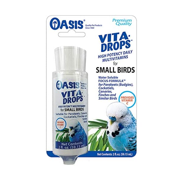 Your small birds deserve the best, and that’s exactly what they’ll get with Oasis Vita-Drops High Potency Multivitamins. Vita Drops ensures your birds are receiving all the essential vitamins and minerals necessary for normal growth, healthy development, and full feathering. Our focus-formula is specifically designed for small birds such as parakeets, canaries, and finches, as well as cockatiels, conures, and lovebirds. We understand that each type of bird has different nutritional requirements, which is why our multivitamins are carefully formulated to ensure a balanced nutritional daily intake for each bird species. We even add extra Vitamin C to boost the immune system, ensuring that your birds stay healthy and happy. Vita-Drops are proudly made in the USA, using only the highest quality ingredients.