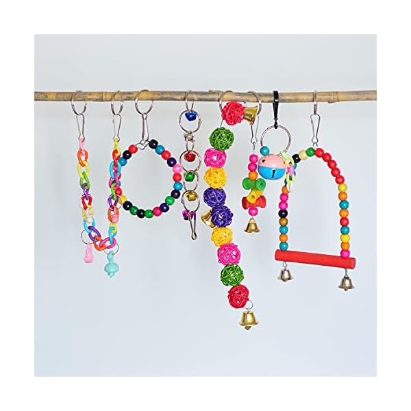 Easy to Install and Clean – All bird swing toys come with an active hook which is easy to install on the top of a birdcage. They are suitable for anchovies, parakeets, parrots, parrots, conical, starlings, macaws, Medium and Small birds.