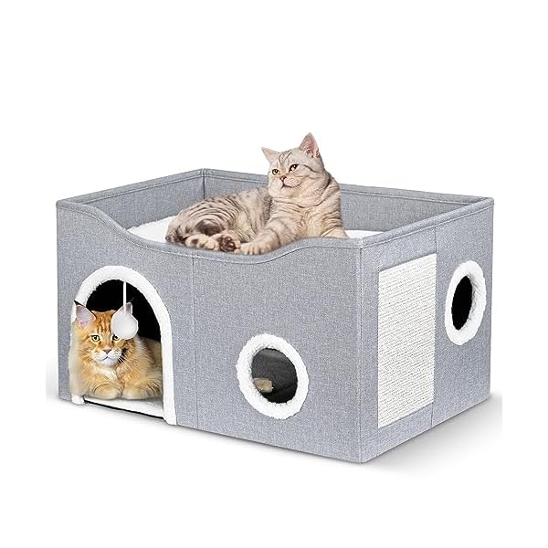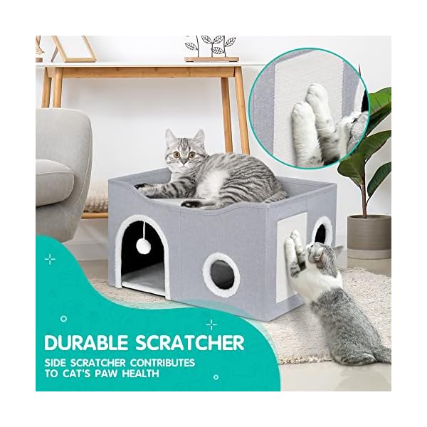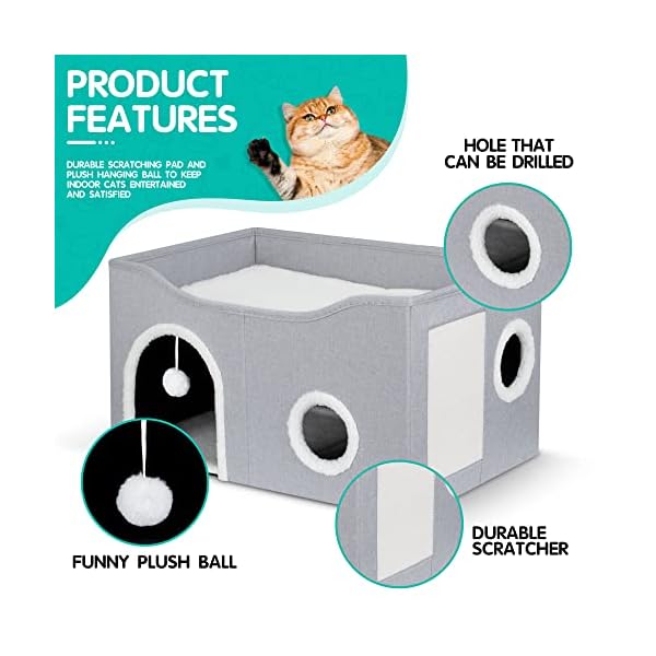 Durable and Fun for Cats: With a large scratching board on the side and a playful plush ball hanging in the door of the cat bed, our cat cave bed provides plenty of entertainment for your feline companion. This sturdy and durable cat furniture is built to last, giving your cat endless fun and scratching opportunities