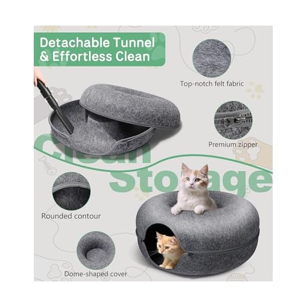 【Simple Maintenance】The detachable tunnel bed is easy to clean, just vacuum, rinse, or hand wash with warm water and detergent for hygiene. Afterward, let it air-dry for a fresh look. Effortless cleaning ensures your pet enjoys a tidy space with ease.