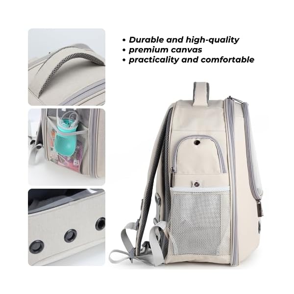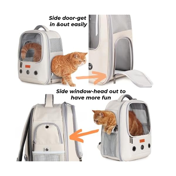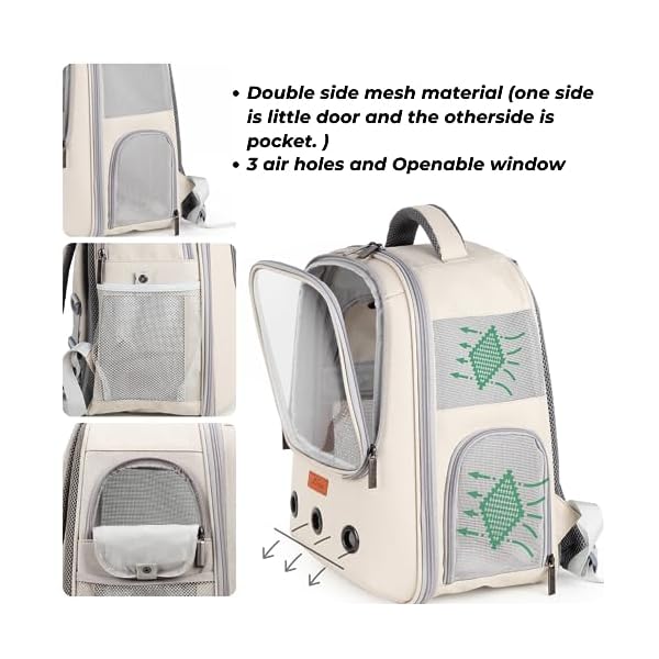 š±ćFunctional & Well madećThe pet backpack is superior in materials and excellent in workmanship. Side open&front zipped window for in and out, side window for head out, side pocket to hold some snacks.
