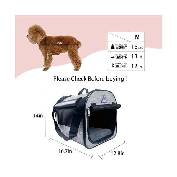 ❤【Notes for Sizes and Weights】- This pet carrier is designed for small and medium pets within 16″ x 13″ x 12″(smaller than product) and less than 20 lbs. Please do not choose your carrier only based on weight. Reference your pets’ length and height in selecting a carrier size.
