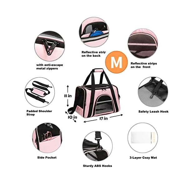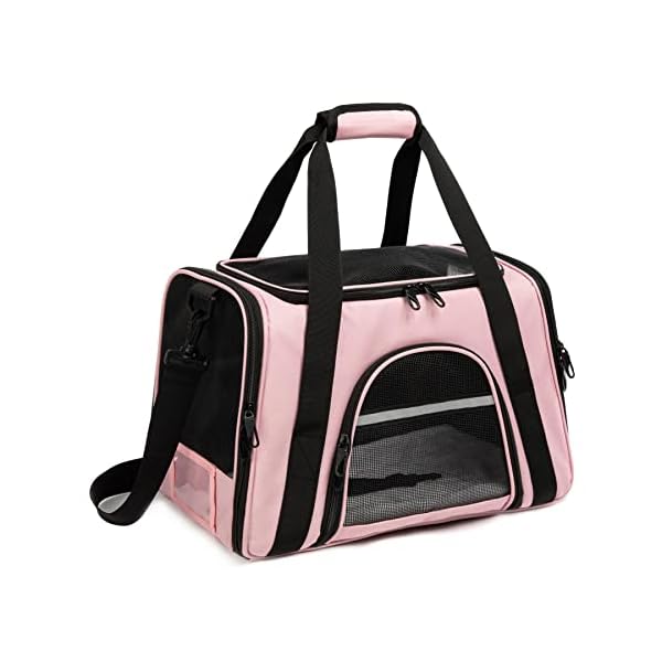 Pet Carrier,Dog Carrier Cat Carrier Airline Approved,Collapsible Soft Sided TSA Approved Pet Carrier for Medium and Small Cats, Puppies Up to 15 Lbs, Cat Travel Carrier (Medium, Pink)