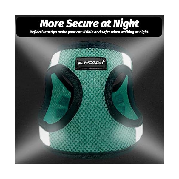 EASY TO WEAR AND SAFE AT NIGHT: Unlike other brands of harnesses that are troublesome to wear, your cat can put on FAYOGOO cat walking harness in just one step. Very easy to wear and convenient to take off. For additional, the reflective strip design of this large cat harness allows your cat walking safely at night.