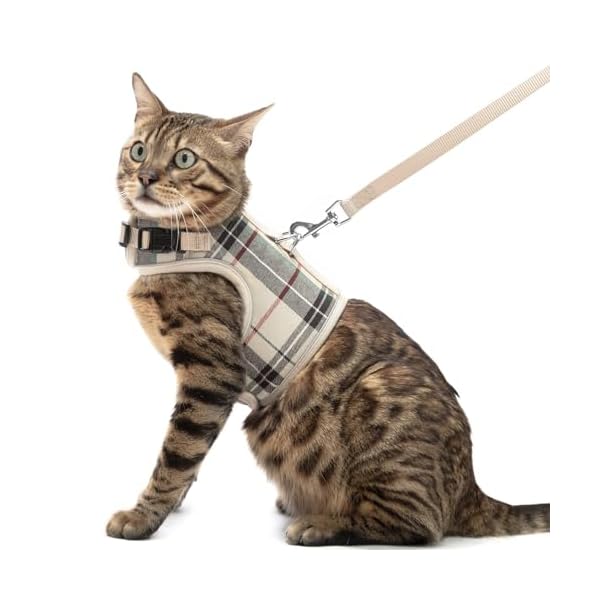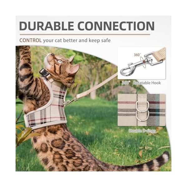 [EASY TO OPERATE] – You can quickly put this harness on your cat’s body even though your cat doesn’t like it! Just need three steps: open the neck and chest closure, let your cat’s head and front leg through, and finally reclose the harness, done! The back of the harness has two D-rings which allow you to connect the leash, it’s very durable!