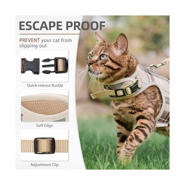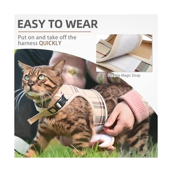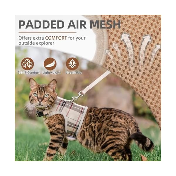 [PREMIUM MATERIAL] – The harness is made of polyester materials, and we adopted an air-mesh design, which is very soft and breathable for cat-wearing. Even though on hot days, your cat still will feel cool and comfortable. Besides, the harness is so lightweight, your cat won’t feel any pressure during walking or running.