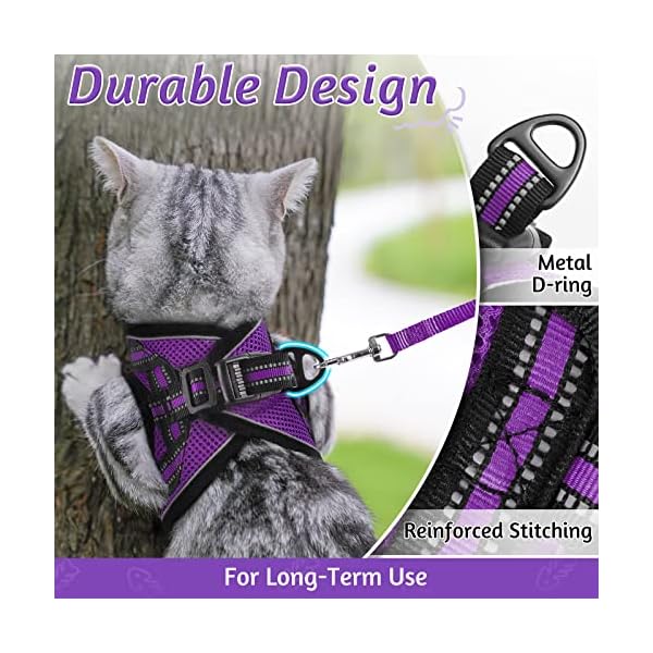 Improved Safety Design: The fast-release buckle and metal D-rings for leash attachment ensure that your cat will stay securely in the harness while you are out on your daily walks. For additional safety, our escape-proof cat harness has reflective strips design, which can keep your kitty always visible even at night
