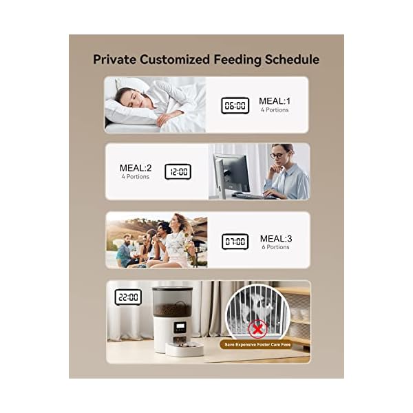🐾 Easy to Use & Maintain: IMIPAW Auto dog feeder inbuilt LCD screen allows for quick setup and press both UP & DOWN together to manual dispense 1 portion; Proper angle so that food will not accumulate in the food outlet, and food tray are removable for cleaning. The secure lid lock design to keep pets from getting food.