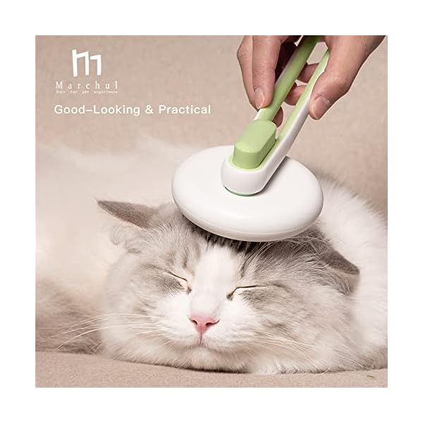 💖One-Click Hair Removal Cat Brush💖: This high-quality cat brush with release button to make your hair removal easier and more efficient. After brushing, just press the self-cleaning button and the pet hair will be pushed out of the brush,which saves time and energy when grooming and cleaning.