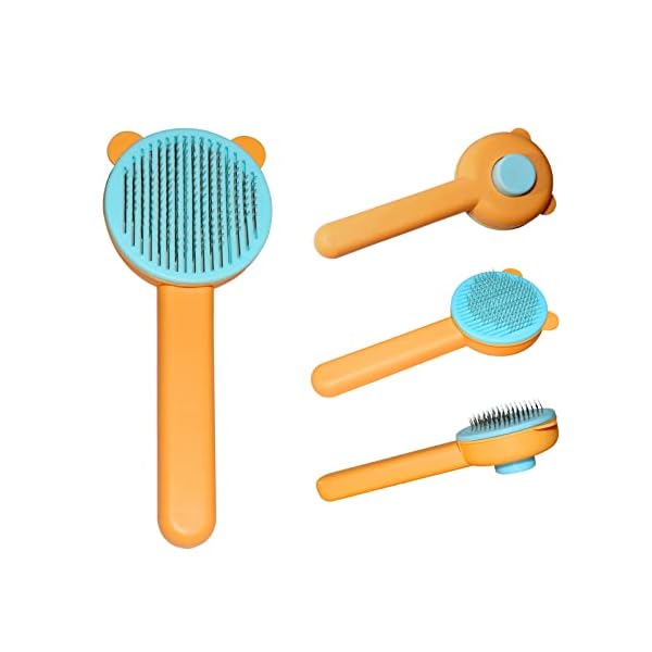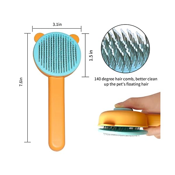 Self Cleaning Brush for Cats and Dogs.Cat Brushes for Indoor Cats.Pet Grooming Self Cleaning Brushes for Cats & Dogs.Pet Grooming Brush Tool Gently Removes Loose Undercoat.(Yellow Bear).