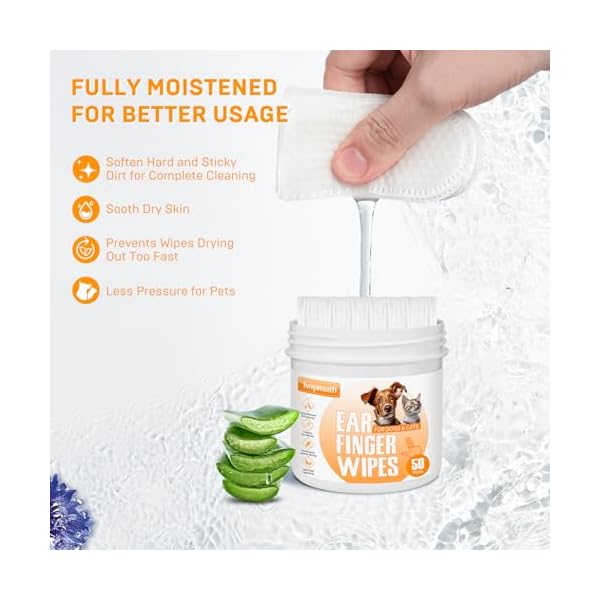 Hydrating Touch, Fully Moistened. Plenty of moisture can soften hard and sticky earwax firstly, so that you can easily wipes up it, and won’t scratch puppy’s sensitive ears. The soft and fully-moistened dog ear cleaner finger wipes gives no pressure on pets, and sooth their dry skin in and around their ears at the same time. Pets will love ear cleaning!