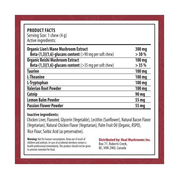 Organic Mushrooms for Dogs & Cats: Be a supportive fur parent and pull all the stops when it comes to your buddy’s well-being. These calming bites for dogs contain Reishi extracts rich in antioxidants for liver and cardiovascular health as well as Lion’s Mane extract for stimulating nerve growth, digestive health, and neurological functions support. 60 servings of calming chews for cats and calming dog chews.
