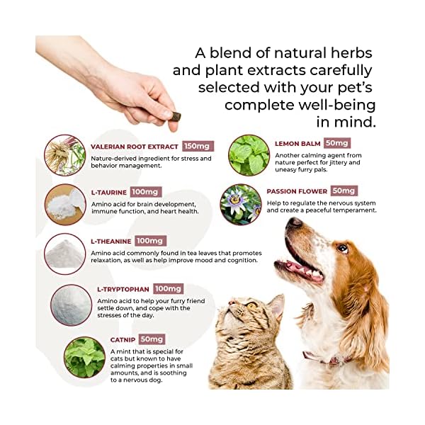 Puppy Calming Treats Brimming with Amino Acids: Each serving of our calming bites contain L Taurine for immune function support, L Theanine to help improve cognition and mood, and L Tryptophan for your pet’s restful and high-quality sleep. Three amino acids present in each calming treats for cats for holistic and optimized wellness that are perfectly safe for dogs and cats of all breeds and sizes.