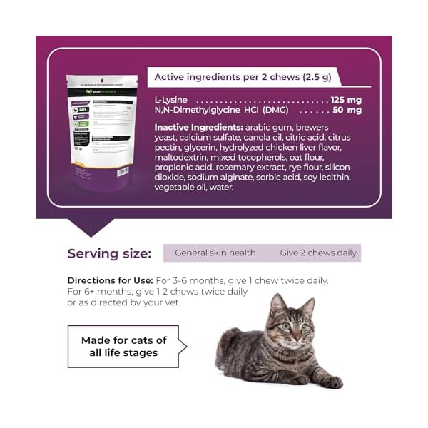VetriScience Vetri Lysine Plus – 120 Chews – Immune Support Cat Supplements and Vitamins with L-Lysine and DMG for Immunity and Respiratory Health​