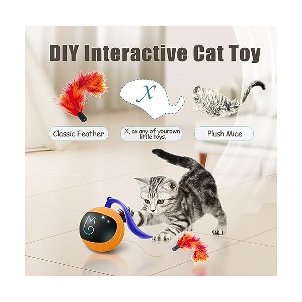 [Create a Distinctive and Entertaining Experience]: the toy allows you to attach accessories fluffy tail, small mice or your cat’s other favorite toys to the rolling ball, creating a combination of active toys that can enhance your cat’s playtime. The rolling ball provides a dynamic and interactive play experience,