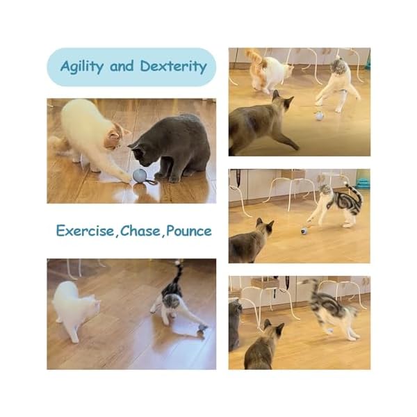 [Motion activated]: its ball lights Up and starts Rolling in random directions as soon as it is touched, just like a small living animal, capturing the cat’s attention and stimulating its natural instincts to chase, pounce and self play.engaging cats physically and showcasing their Agility and dexterity.
