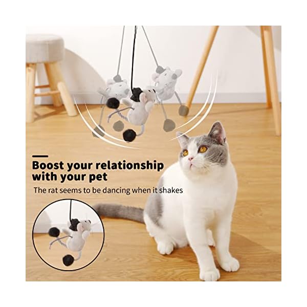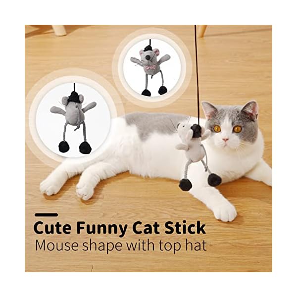 Funny cat toy, the cute mouse design will make a realistic squeaking sound when it swings: the toy and the wand adopt the cat toy with the swing sound design, when it interacts with the cat, it will make a squeaking sound when it swings left and right, providing indoor prey And stimulate the cat’s hunting instinct, suitable for indoor cats best-selling cat toys