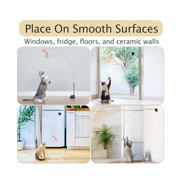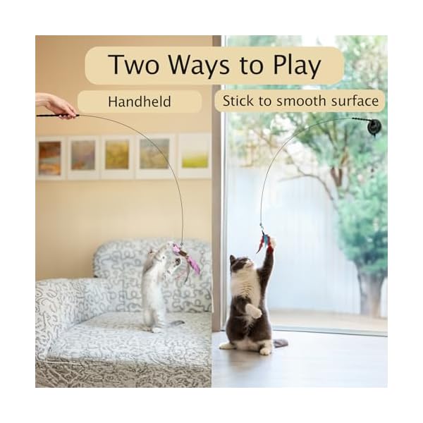[Long-Lasting Design] Our self play cat toys feature a heavy-duty handle that can withstand a lot of pressure exerted by energetic kittens. The rod is very durable and flexible, which prevents it from bending or breaking apart.
