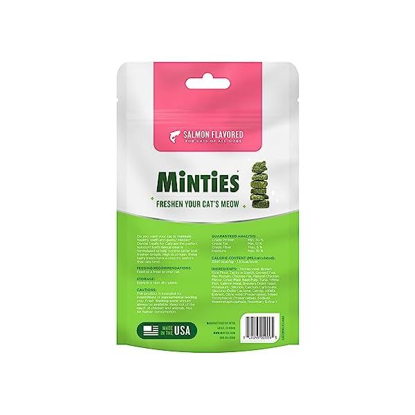 FRESHENS BREATH: MINTIES Dental Treats for Cats is a tasty cat teeth cleaning treat which contains a natural breath freshener that combats bad breath at its source.