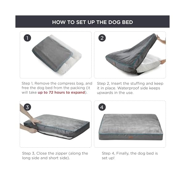 PLEASE NOTE: The dog bed is compress-packed, because we want you to spend money on the quality of the product itself, rather than the delivery freight. so that it will take some time for a recovery, usually for 71 hours. If necessary, continue to reshape and fluff the bed!