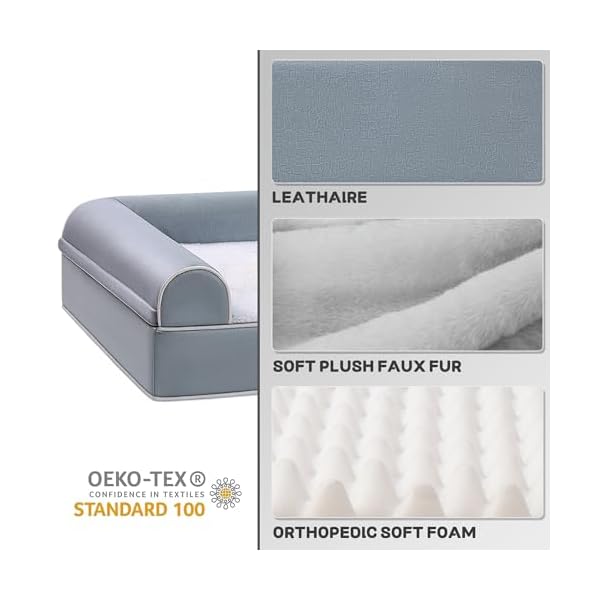 【DESIGNED FOR PETS】- The large dog bed is designed with U-shaped. The three-sided foam-filled pillow provide extra support for your pet’s neck and head, allowing pets to rest better in the dog bed.