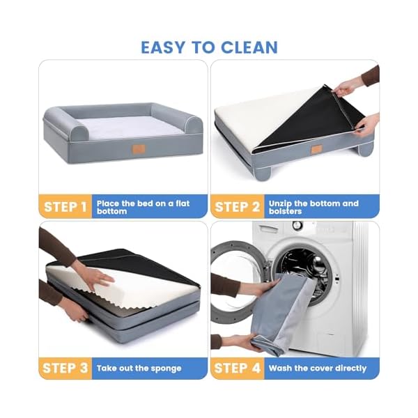 【WATERPROOF & REMOVABLE DOG BED】- The durable foam mattress is encased in a waterproof liner to fully protect the foam from spills, water damage, or accidents. Remove the zippered cover in seconds and machine wash for easy care.High temperature cleaning or drying is not recommended, and tumble dry at low temperatures is appreciated.No bleaching.
