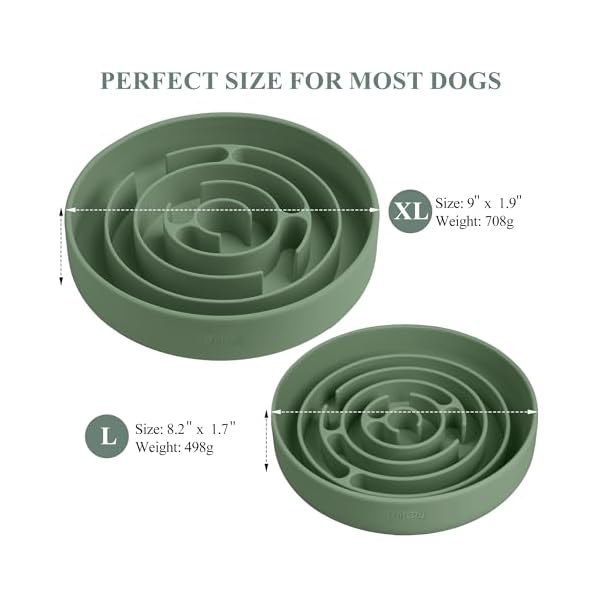 Coomazy XL Slow Feeder Bowl, Silicone Dog Bowl with Suction Cups, Slow Feeder & Non-Slip Design, Boredom and Anxiety Reducer, Suitable for Large Dogs, Avocado Green