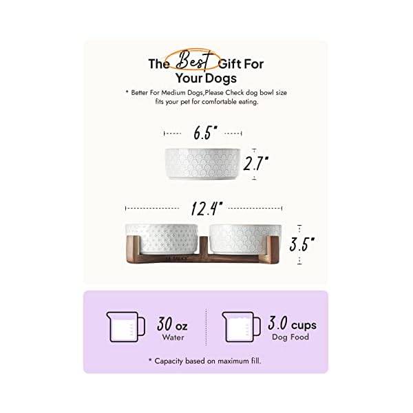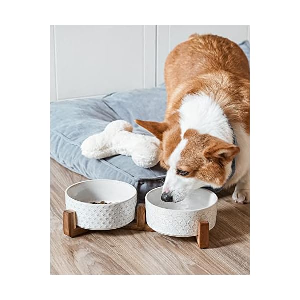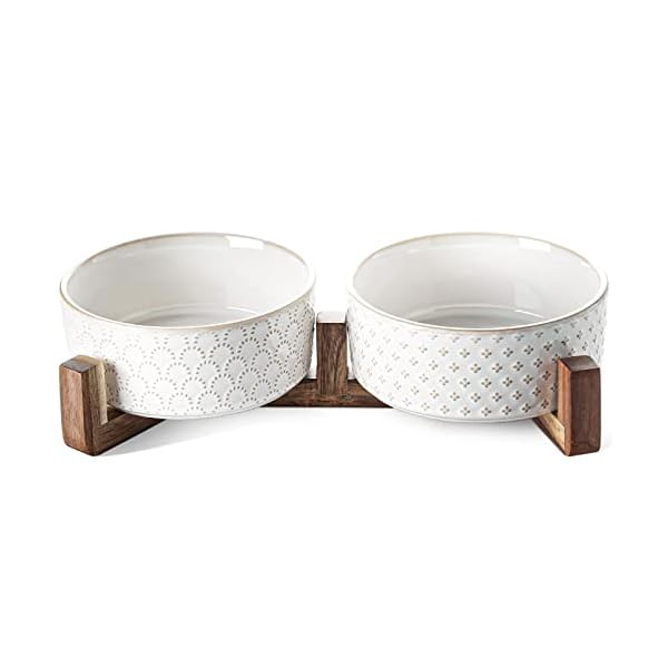 LE TAUCI Dog Bowls Ceramic, Bowl Set with Acacia Wood Stand, 3 Cups Dog Food and Water Bowl for Small Medium Sized, Weighted Dog, Pet Bowls