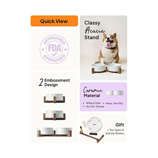 Acacia Wood Stand: Adopting with classy acacia wood stand, this aesthetically pleasing ceramic dog bowls with stand fits perfectly with any home decor style. šŸ¤PLEASE NOTE: there are nails inside the wooden stand for holding, please be careful to prevent your dog from chewing on the wooden stand to avoid hurting his tongue!