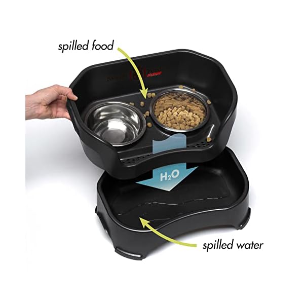 MESS PROOF, SPILL PROOF, & KICK PROOF – Spilled food is separated and contained at the top of the dog feeder, while spilled water drains into the catch basin below to keep your dog’s feeding area neat and clean.