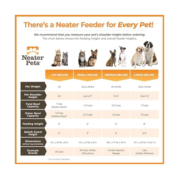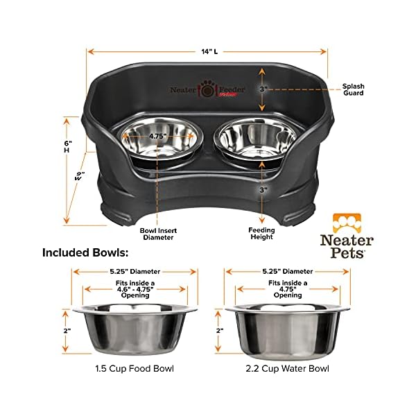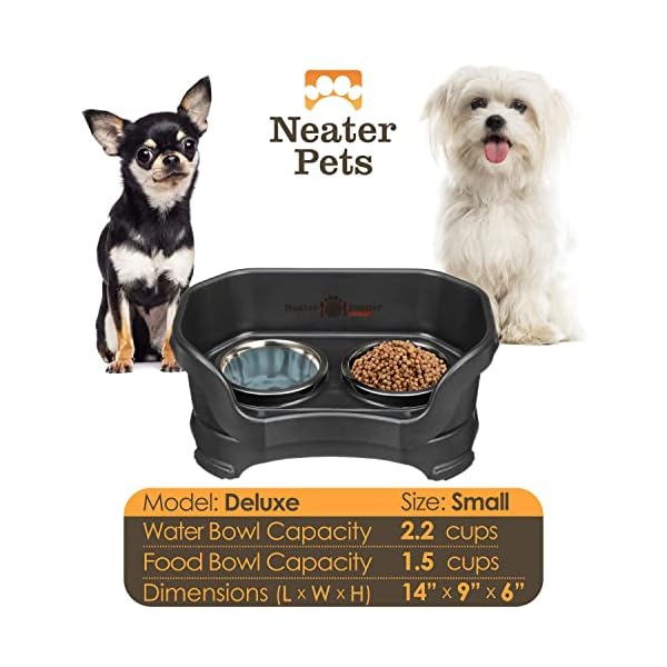 MADE FOR SMALL DOG BREEDS – Designed for smaller dog breeds like Chihuahuas and Terriers. The Neater Feeder has a 3” feeding height (at bowl rim) that is ideal for your dog’s comfort. It also has a contoured design that allows easy access to the bowl area. Includes (1) 1.5 cup food bowl and (1) 2.2 cup extra capacity water bowl.