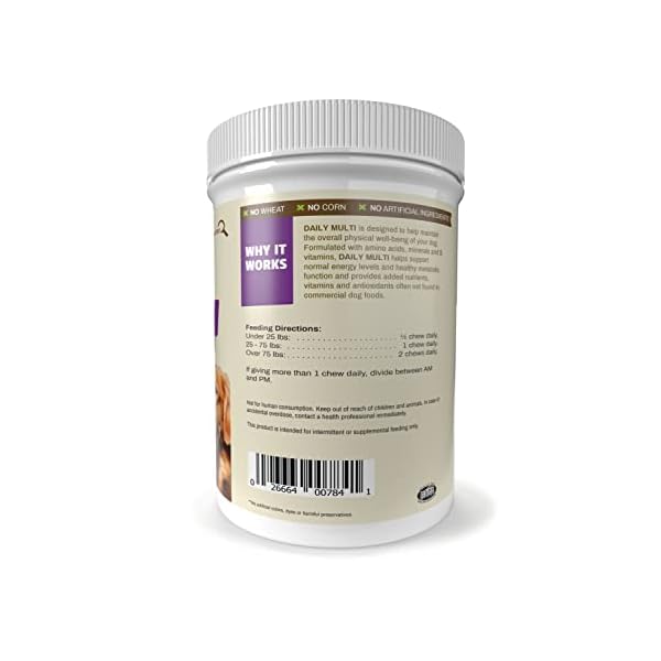 VET FORMULATED – Daily Multi for dogs is a veterinarian formulated supplement for use in dogs of all ages. It includes 28 nutrients to help keep dogs of all ages in peak condition.