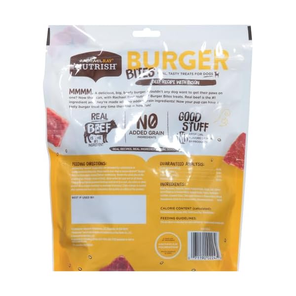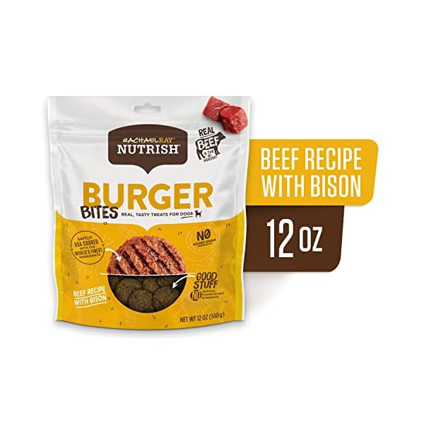 Any dog would love to get their paws on a big, juicy burger fresh off the grill. Give them the mouthwatering flavor they crave with Rachael Ray Nutrish Burger Bites Beef Recipe With Bison dog treats. These soft dog treats break apart easily for smaller mouths, making them perfect for dogs of all sizes. Every batch is safely USA cooked with the world’s finest ingredients. The number one ingredient? Real beef. There are no artificial flavors or meat by-products here—no added grain ingredients, either. Just good stuff that gets your dog drooling whenever you open the pouch. Give ‘em a try.